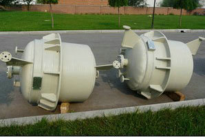 二种:Oblation缠绕工艺方法,利用玻璃钢材料,具有一定的柔顺性质,在生产车间里先缠绕成PPH聚丙烯异型设备壳体以后,在横向上施加以一定的压力装上卡车运输到使用工地,然后再恢复到原来的圆柱外形,然后再装配成所设计的特大型玻璃钢PPH聚丙烯异型设备。
